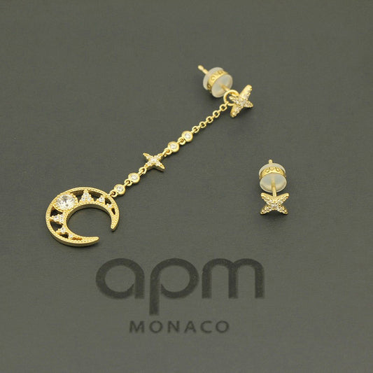 APM Asymmetric Star & Moon Yellow Silver Earrings AE12342OXY