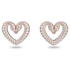 Una stud earrings Heart, Small, White, Rhodium plated 5625535 5628659