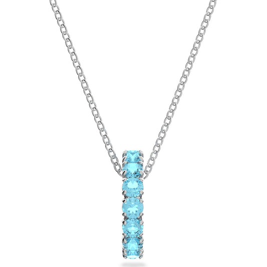 Swarovski Exalta pendant, Extra long, Blue, Rhodium plated 5643754