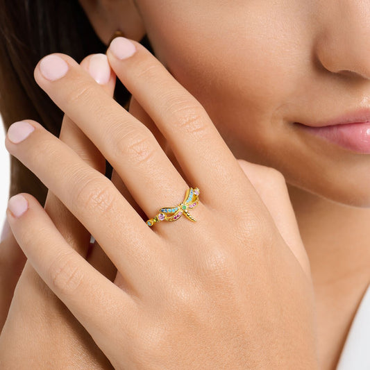 Thomas Sabo Silver Ring Gold-plated dragonfly with coloured stones TR2383-315-7-58, Size58