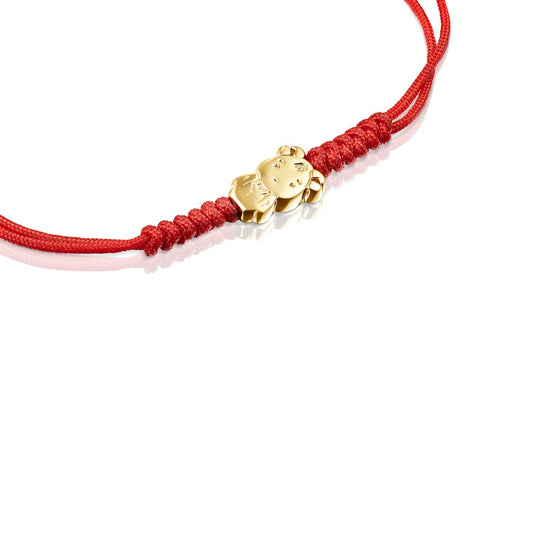 Tous Chinese Horoscope Rabbit Bracelet in Gold and Red Cord 918431050
