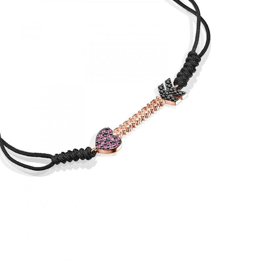 Tous Rose Gold Vermeil San Valentín arrow Bracelet with Gemstones and black Cord 915301590