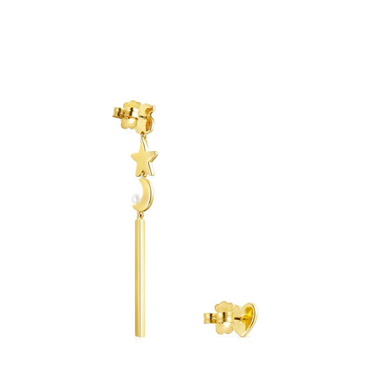 Tous Long Nocturne bar Earrings in Gold Vermeil with Diamonds and Pearl 918443730