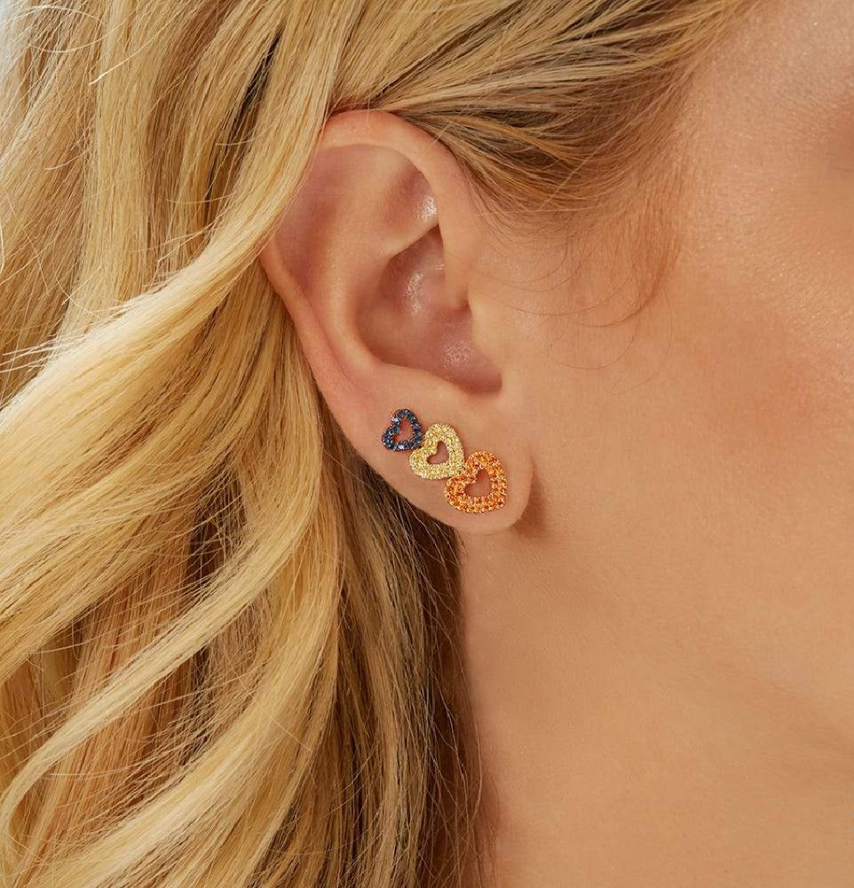 APM Single Triple Heart Earring Silver Gold-Plated AE12723MY