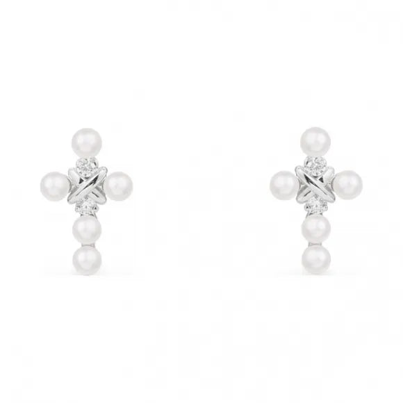 APM Cross Earrings with Pearls - Silver AE12709XPL