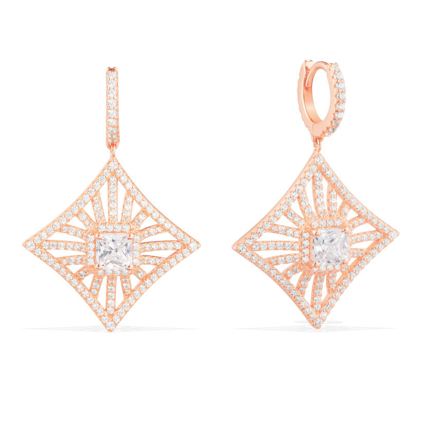 APM Lozenge Dropping Earrings - Pink Silver RE9980OX