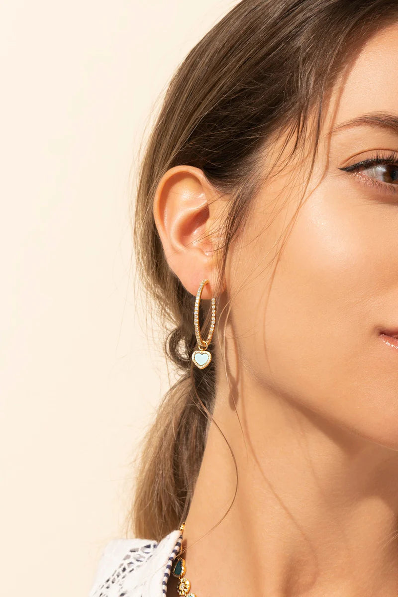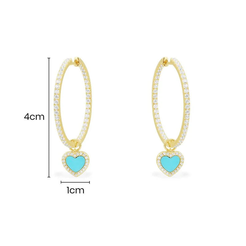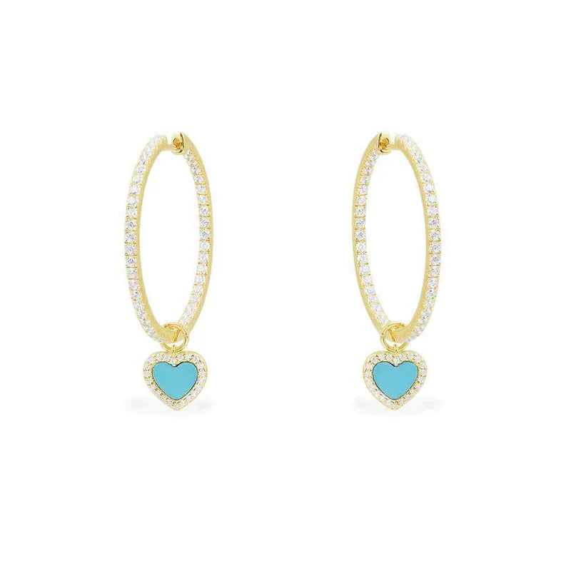 APM ETE Lagoon Blue Hoop Earrings with Heart - Yellow Silver AE13092XTUY