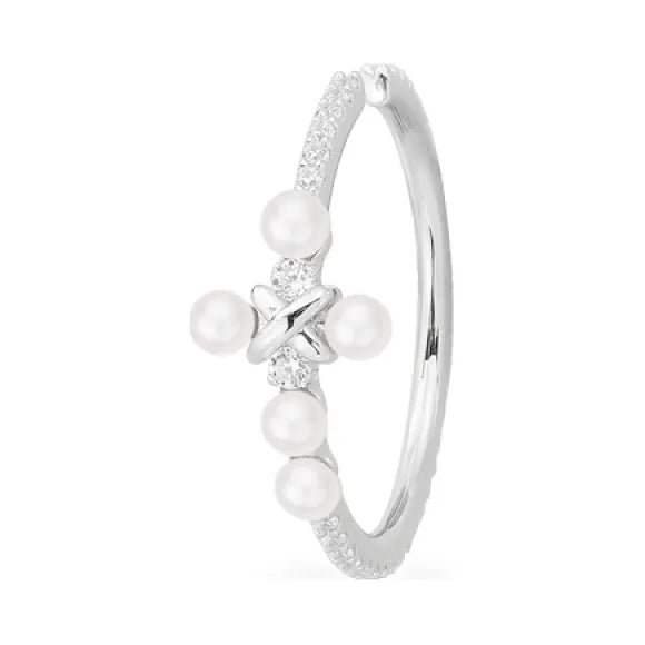 APM Monaco Single Cross Pearl Ear Cuff Silver AE12710XPL