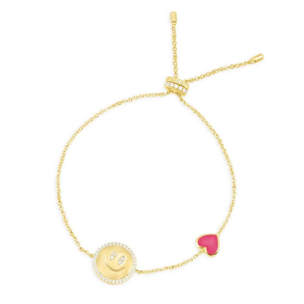 APM Neon Pink Heart & Happy Face Adjustable Bracelet AB4394XFRY