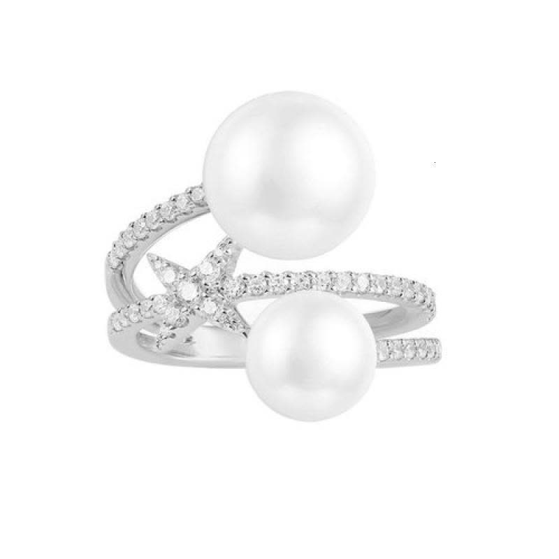 APM Silver Interlaced Pearl And Star Ring A18990XPL