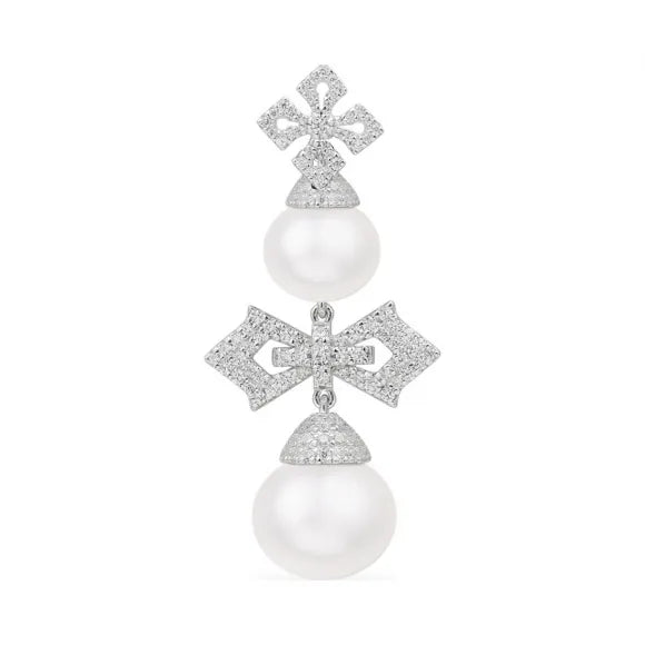 APM Single Cross Earring with Dangling Pearl - Silver AE12656XPL