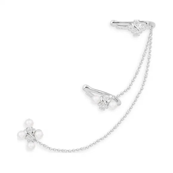 APM Single Cross-shaped Ear Clip Pearl - Silver AE12711XPL