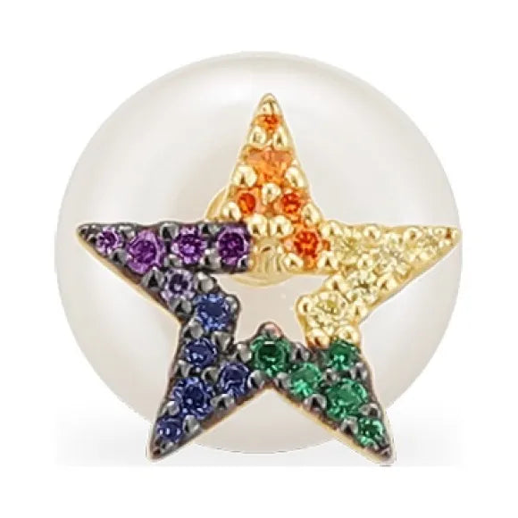 APM wears a single star earring with pearls on the front and back - gold-plated and silver AE12623MY