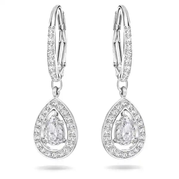 Swarovski Una Angelic drop earrings Pear cut, White, Rhodium plated 5197458