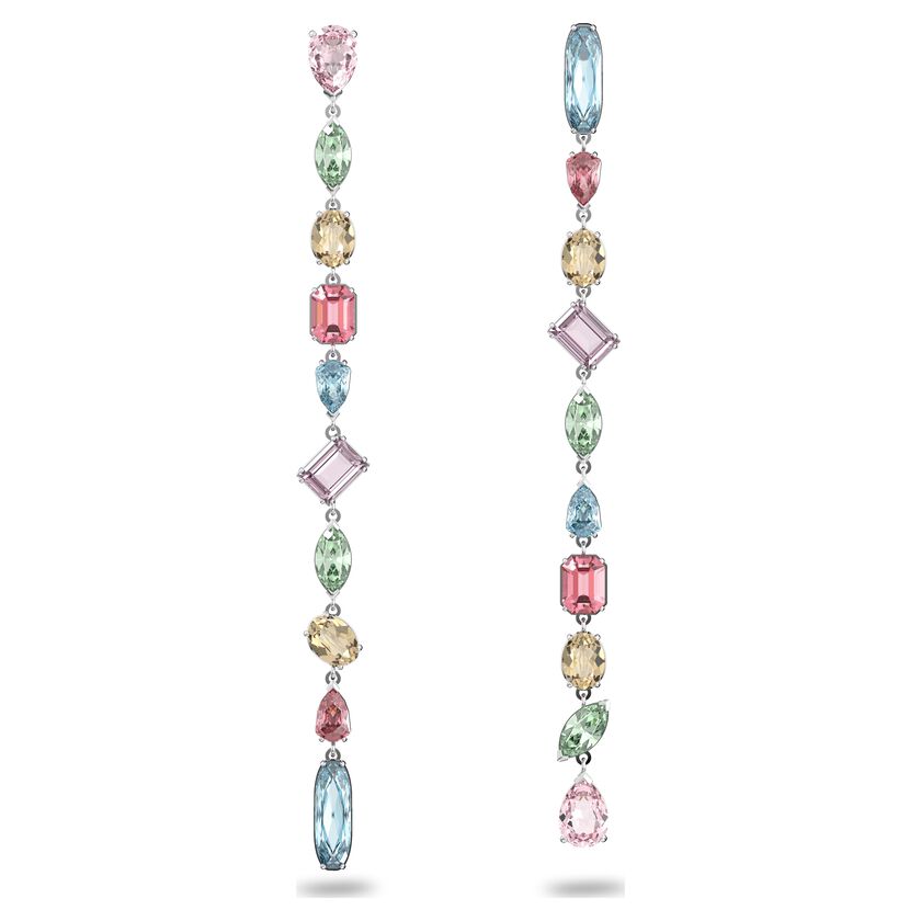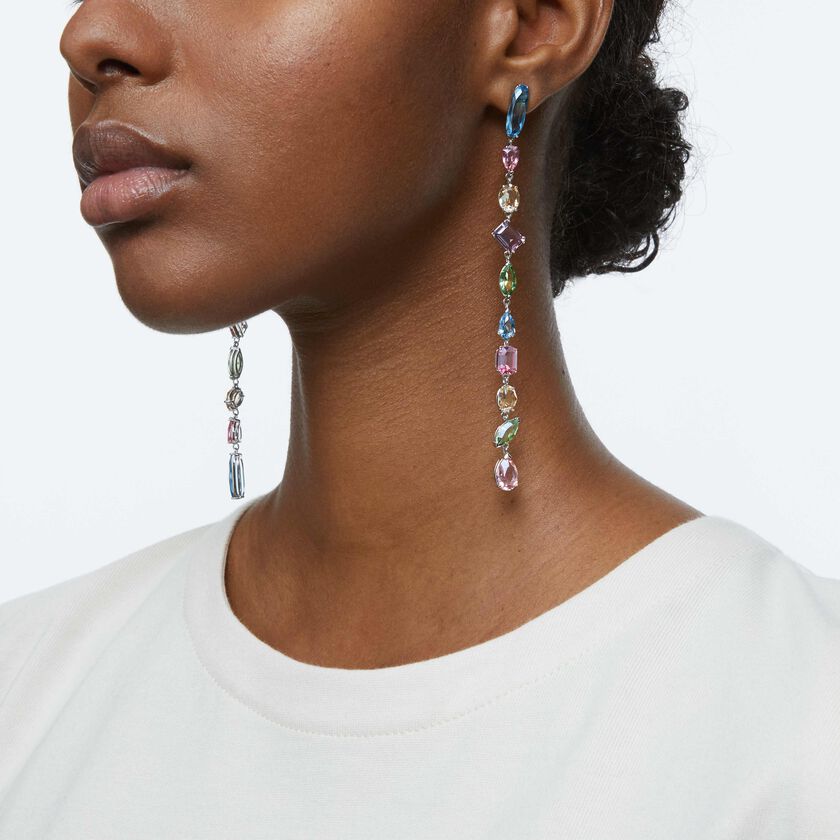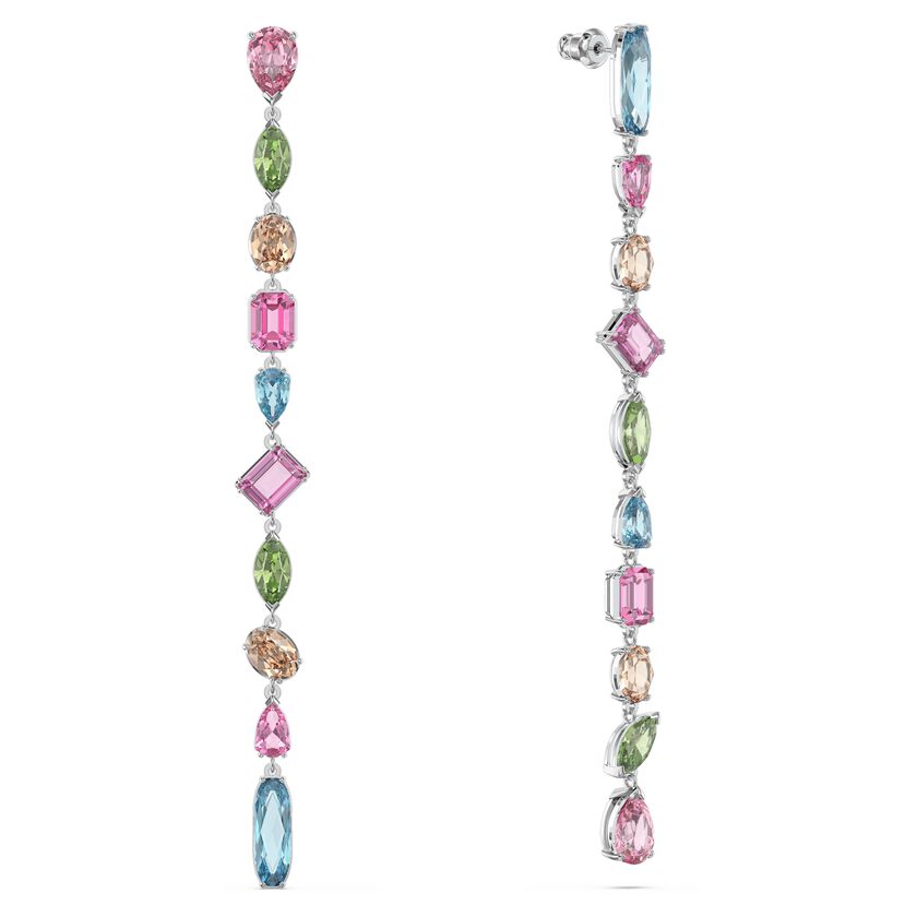 Swarovski Gema drop earrings Extra long, Multicolored, Rhodium plated 5600979