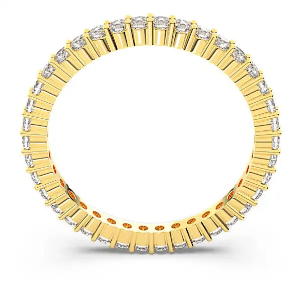This Matrix Vittore ring is ideal for a subtle touch of glitter. It combines the classic pairing of clear round stones with a gold-tone finish, giving you a look that is refined and luxurious. Designed to shine on all sides, you can stack this jewellery with other styles, such as an eye-catching cocktail ring for an effective contrast.