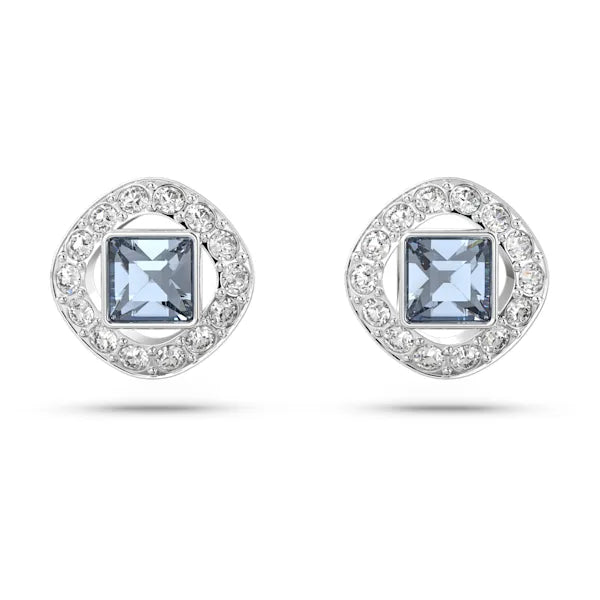 Swarovski Una Angelic stud earrings Square cut, Blue, Rhodium plated 5662143