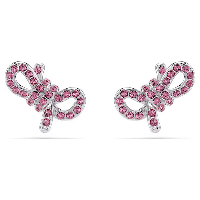 Swarovski Lifelong Bow Stud Earrings Bow, Pink, Rhodium Plated 5723557
