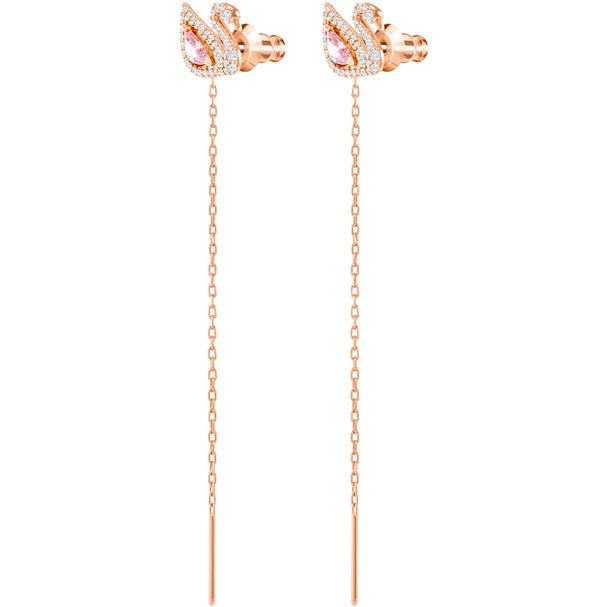 Enjoy multiple looks with this dazzling pair of versatile long-length pierced earrings. The iconic swan motif shines with a full-cut crystal body in cool millennial pink and crisp clear pavé lines. Wear as simple studs, or attach one, or both, of the delicate rose gold-plated chains for more statement style. A dainty design that will undoubtedly add cool and romantic style to your everyday collection. Matching items are available.
