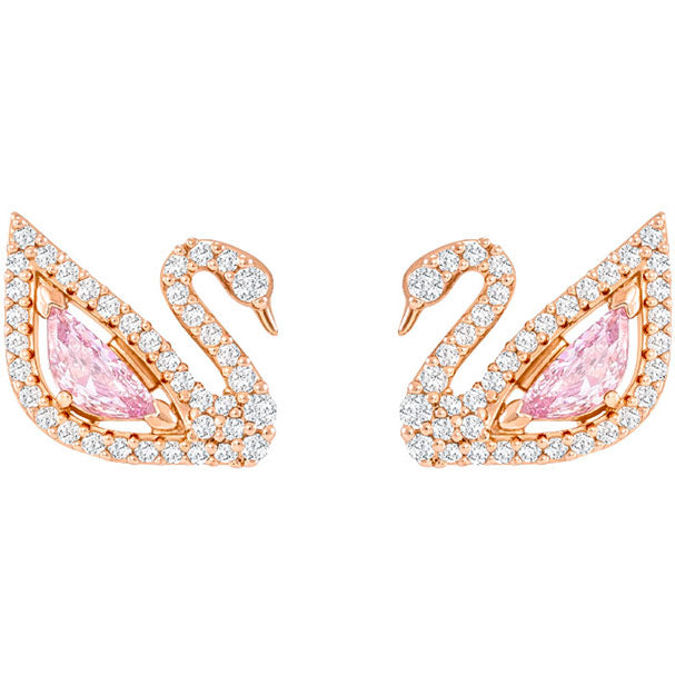 Swarovski Dazzling Swan Pierced Earrings, Multi-colored, Rose Gold Plating 5469990
