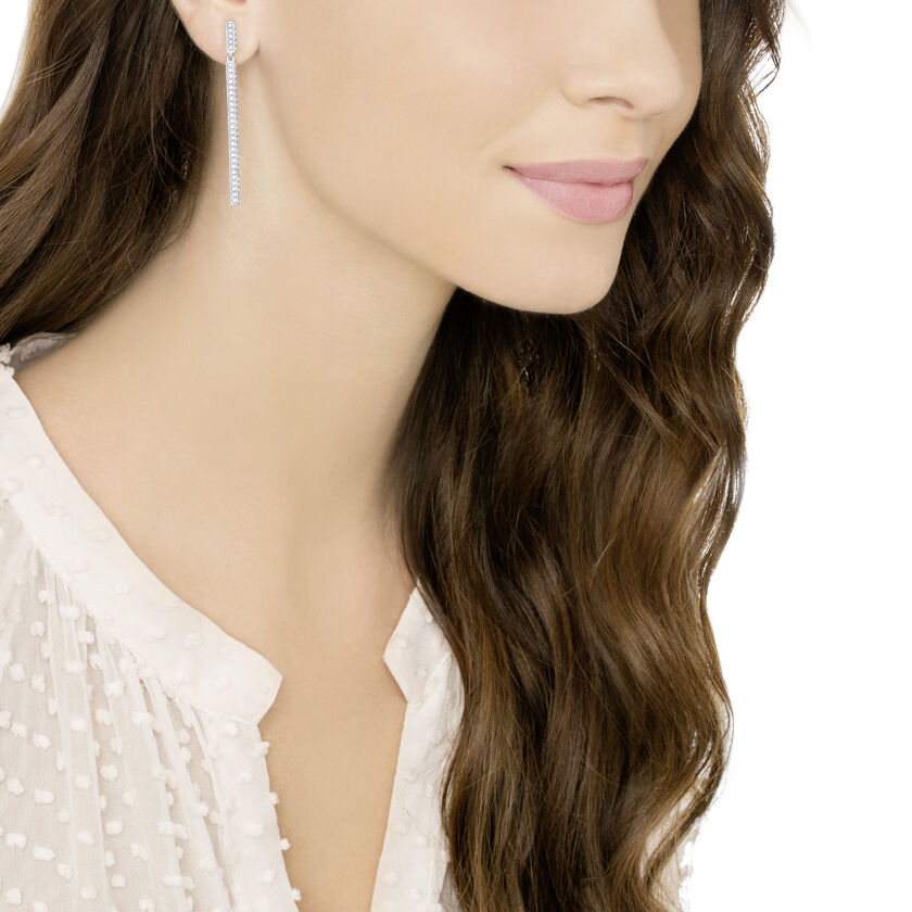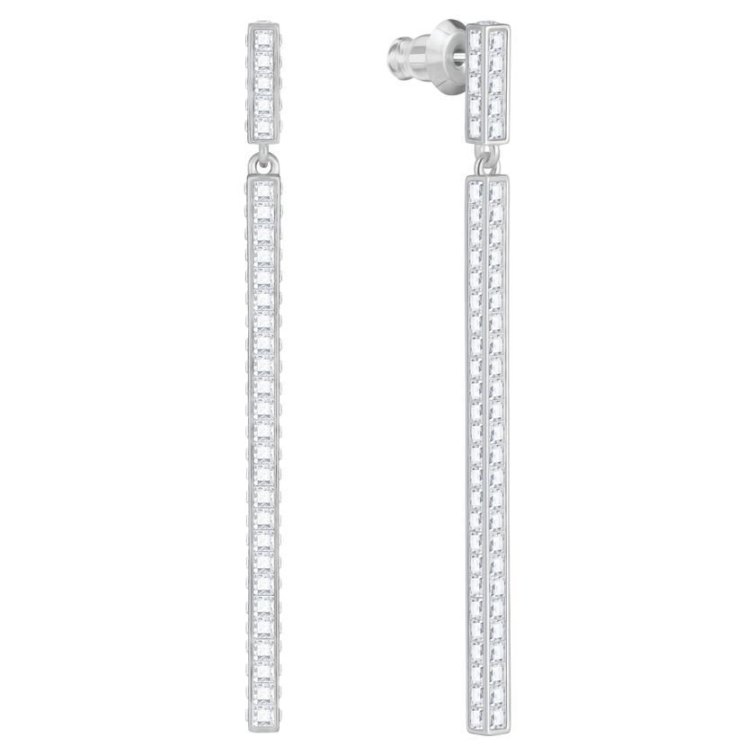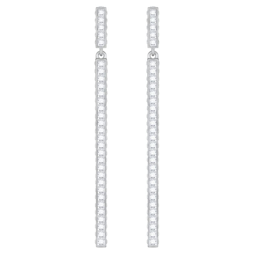 Swarovski Game Clear Crystal Long Pierced Earrings - White - Rhodium Plated 5292399