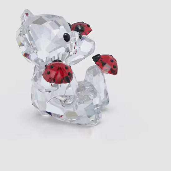 A playful celebration of nature, this cute figurine is a new member of our iconic Kris Bear collection, which has been delighting collectors since 1993. The design is crafted with 547 facets and showcases an adorable bear sitting with three red ladybugs, a symbol of luck. A wonderful way to spread joy and good wishes. Decoration object. Not a toy. Not suitable for children under 15.