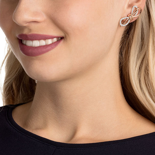 Choose a modern and meaningful gift this Valentine's Day with the Lifelong Bow collection, which uses the bow motif as a flirtatious and fun symbol of love. Sophisticated yet playful and youthful, this pair of pierced earrings exudes cool-classic romance with its sleek lines, 3D silhouette, and mix of rose gold and rhodium plating. Perfect for thoughtful gift-givers, or for treating yourself.