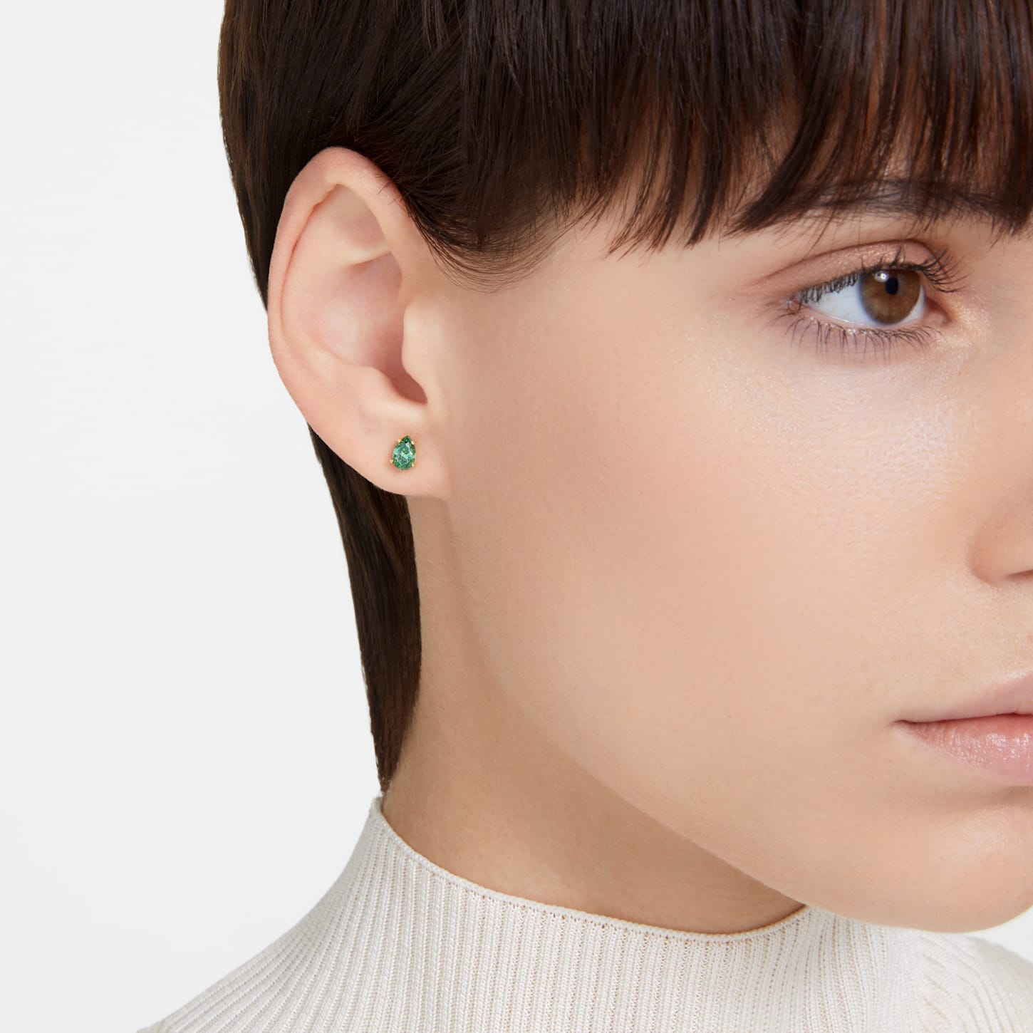 Swarovski Stilla stud earrings Pear cut, Green, Gold-tone plated 5639120