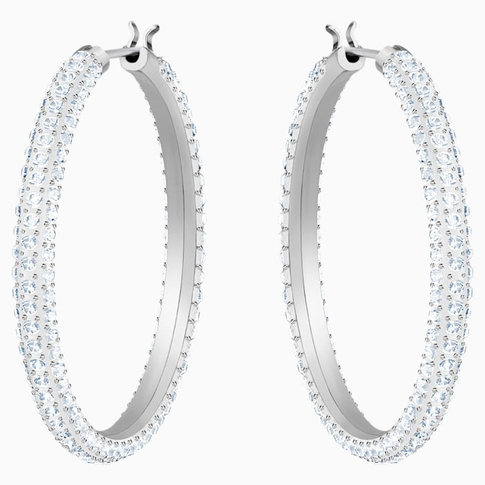 Swarovski Stone Hoop Pierced Earrings, White, Rhodium plating 5389432