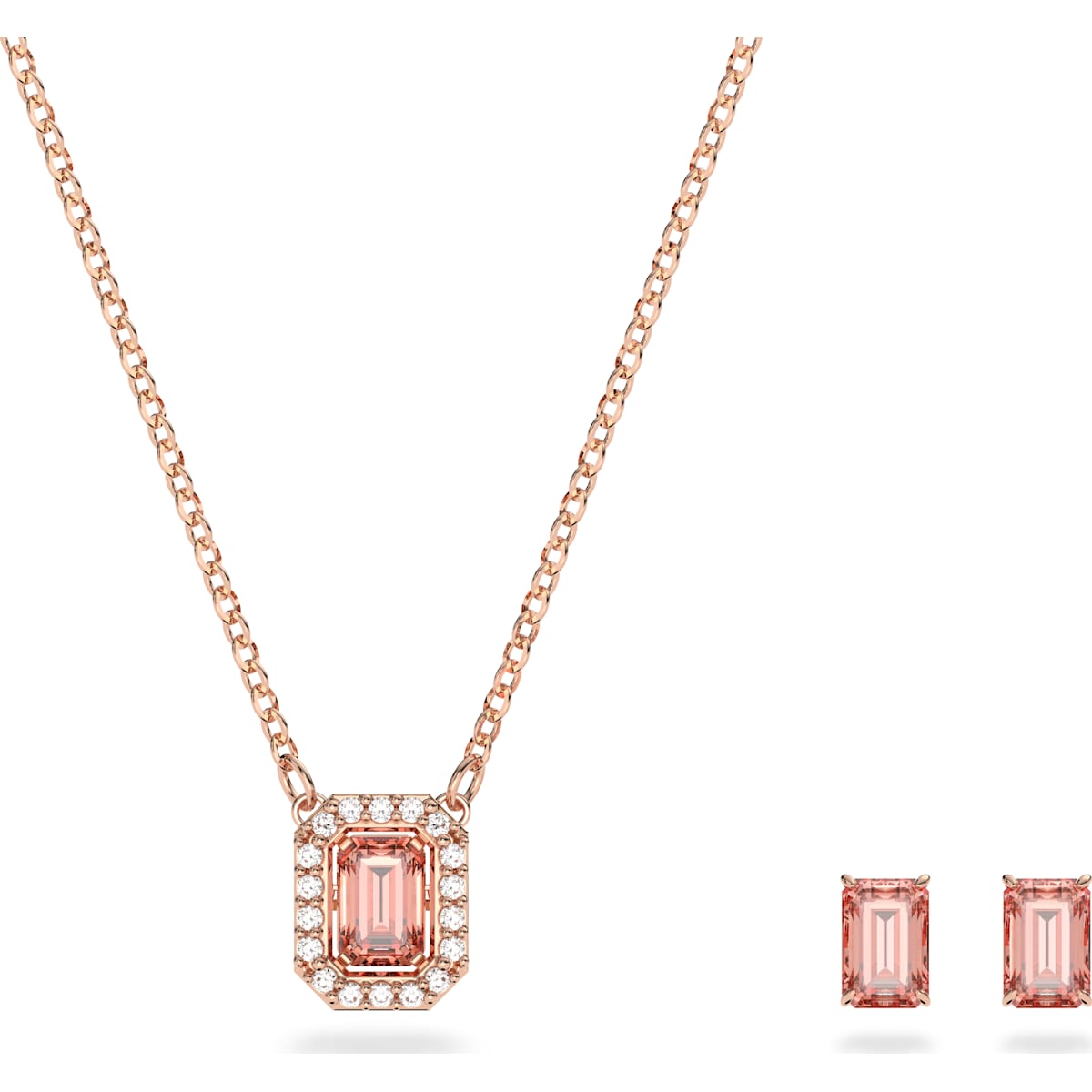 Swrovski Millenia set, Octagon cut Swarovski Zirconia, Pink, Rose-gold tone plated 5620548