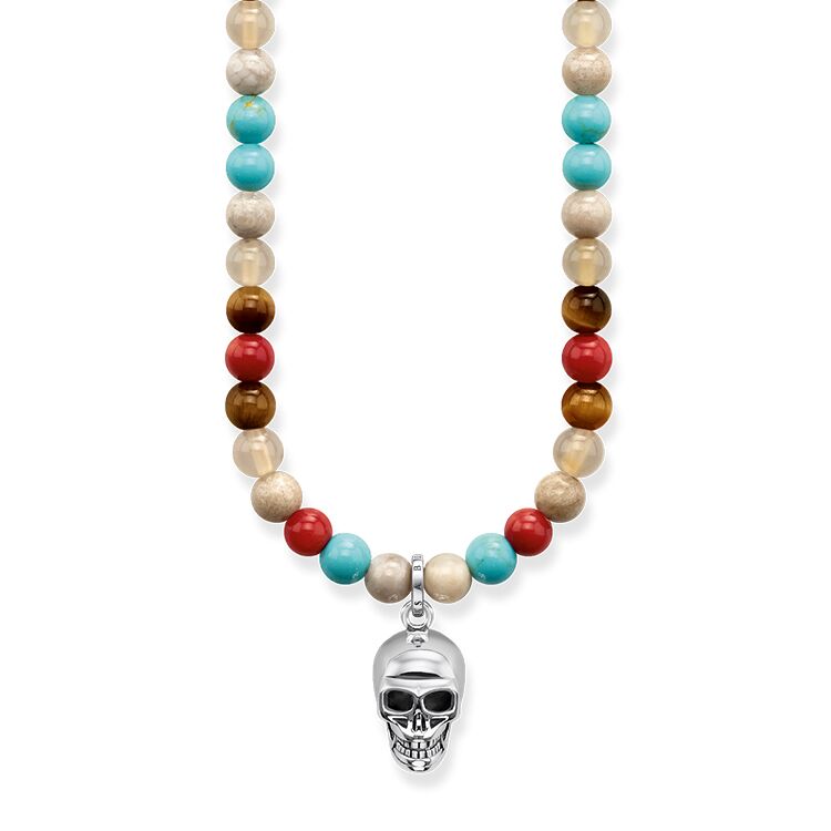 Thomas Sabo Silver Skull Necklace with Multicolored Beads KE1638-883-7