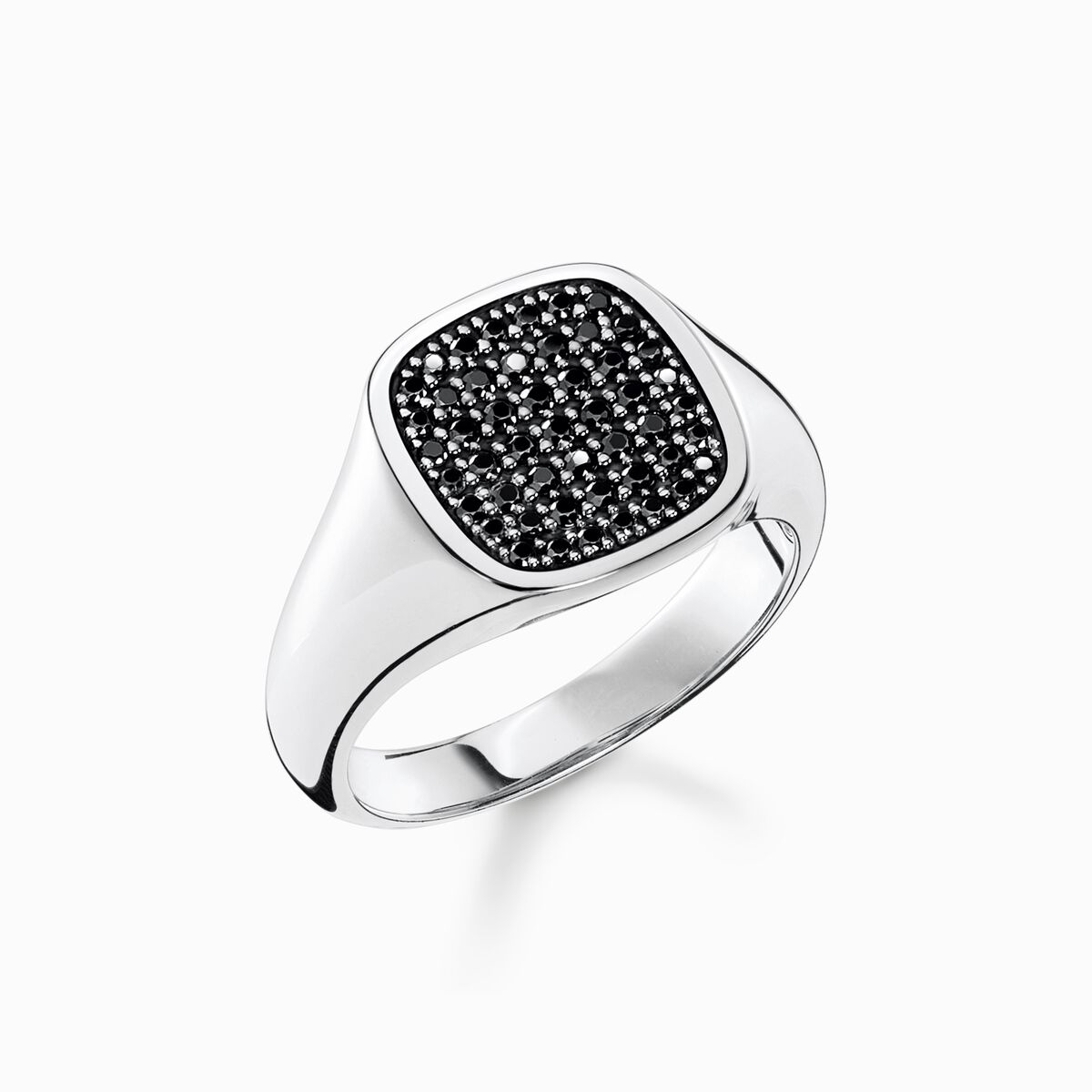 Back to classics: this high-quality piece of jewellery made of 925 Sterling silver has a classic signet ring design. A trimming with sparkling black zirconia pavé gives it a modern, glamorous twist. This signet ring is perfect for creating a strong statement and suitable as an extravagant partner ring. As a personal accessory it goes with everyday looks and as an extravagant eye-catcher with outfits for special occasions.