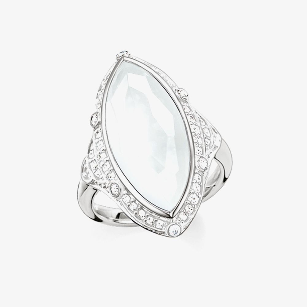 Thomas Sabo Sterling Silver Milky Quartz & Cubic Zirconia Marquise Ring Size56 TR2041-690-14-56