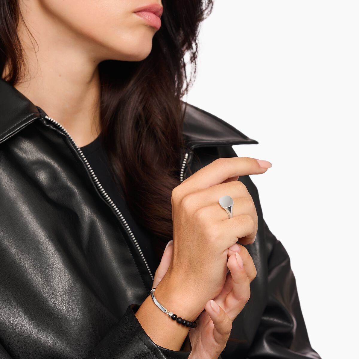 Clean modern chic: The signet ring of shiny polished silver becomes a piece of jewellery with a strong statement thanks to the clarity of material and design.