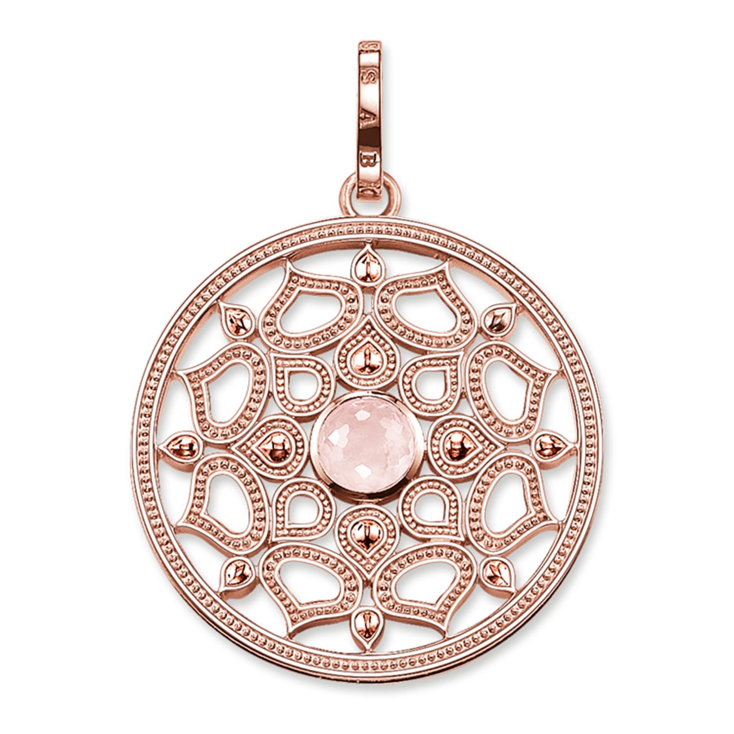 Thomas Sabo Sterling Silver 18k rose gold plated small pink lotus pendant with Rose Quartz PE690-536-9