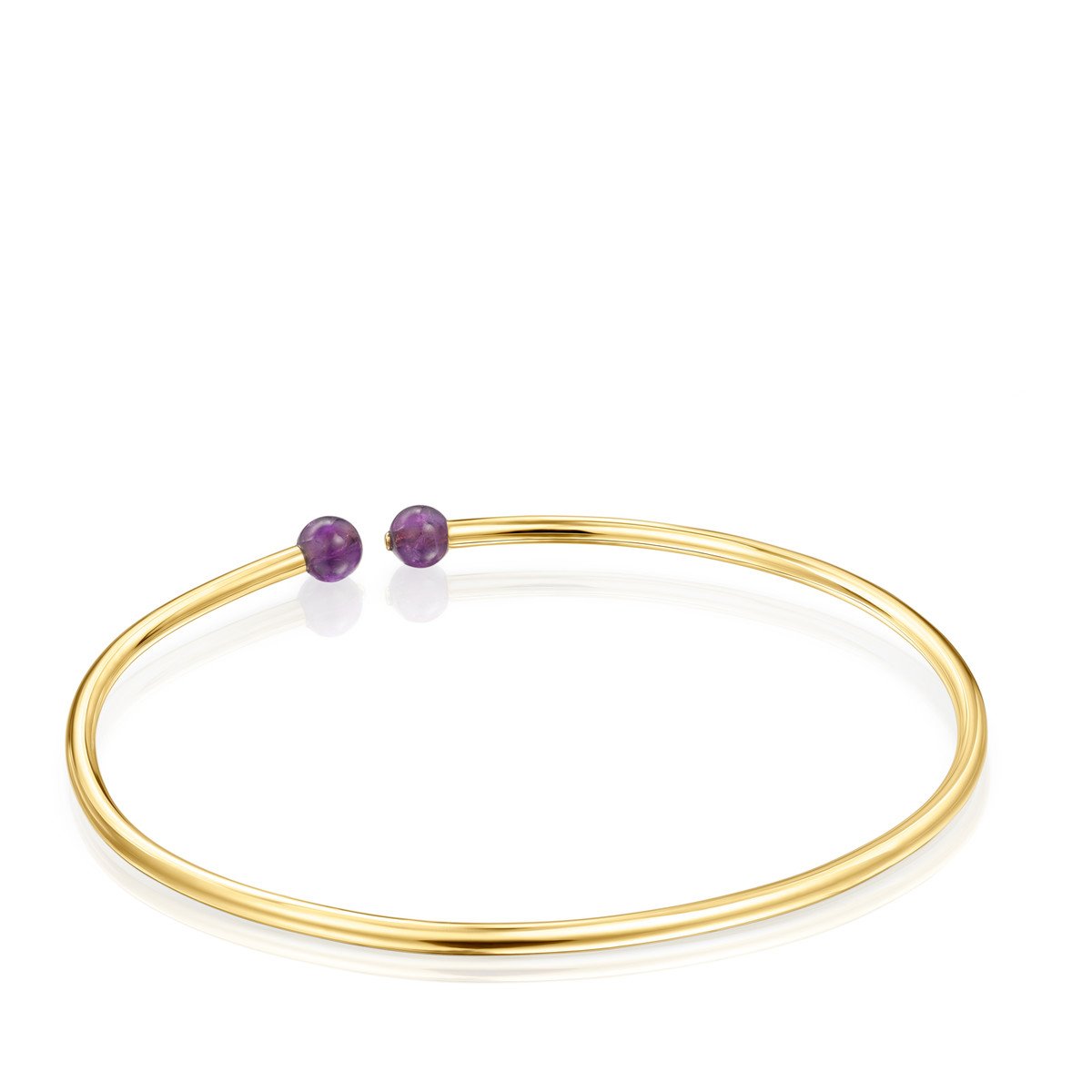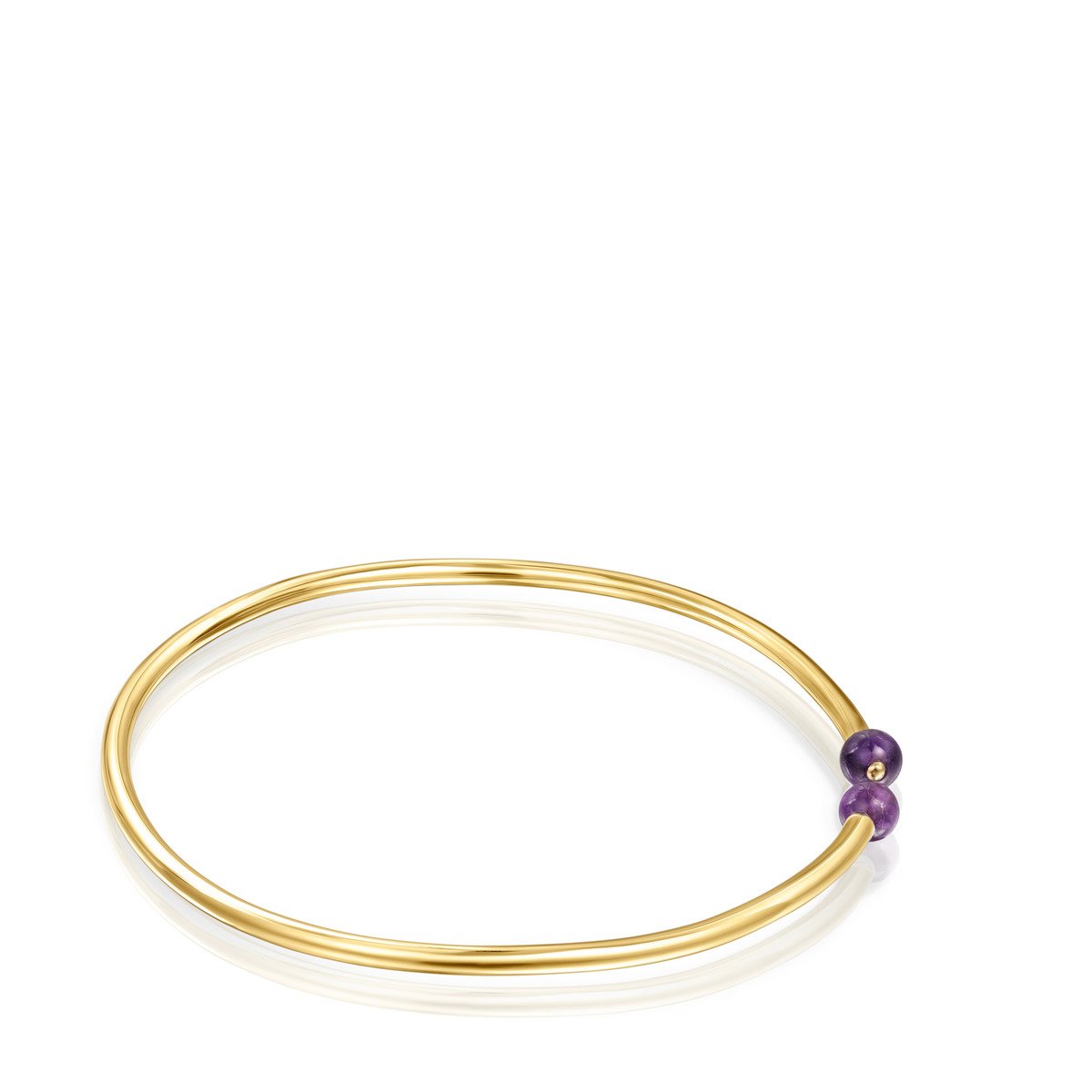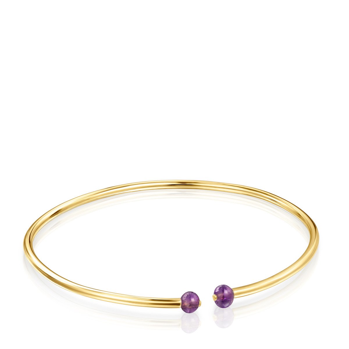 TOUS Batala Bangle in gold vermeil with 0.6 cm amethyst. ø 6.5 cm. (Vermeil: Sterling silver plated with a layer of 18 kt yellow gold.)