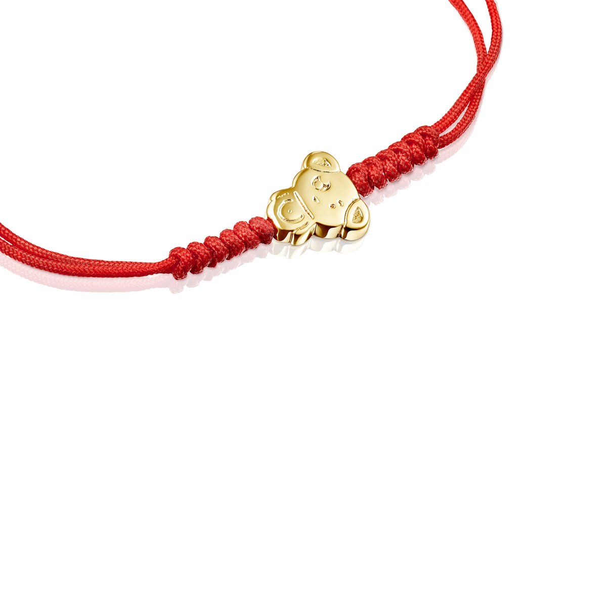 Tous Chinese Horoscope Dog Bracelet in Gold and Red Cord 918431090