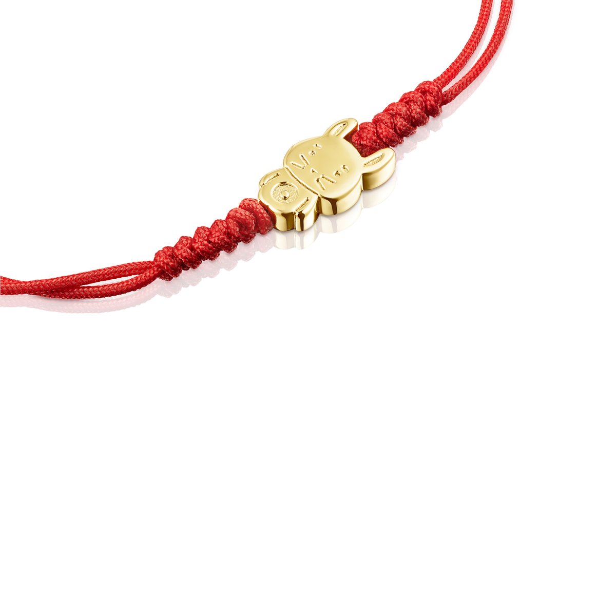 Tous Chinese Horoscope Rabbit Bracelet in Gold and Red Cord 918431050