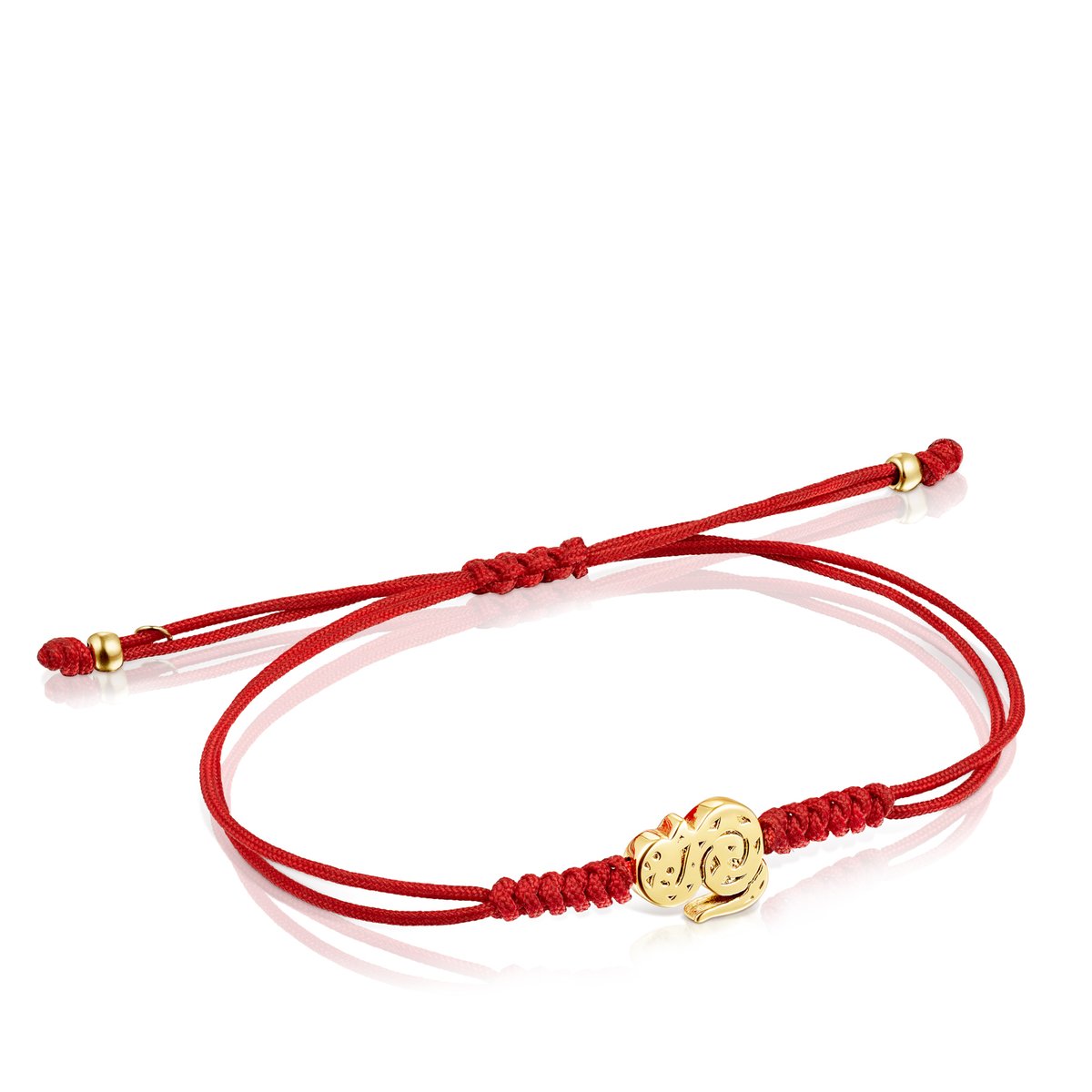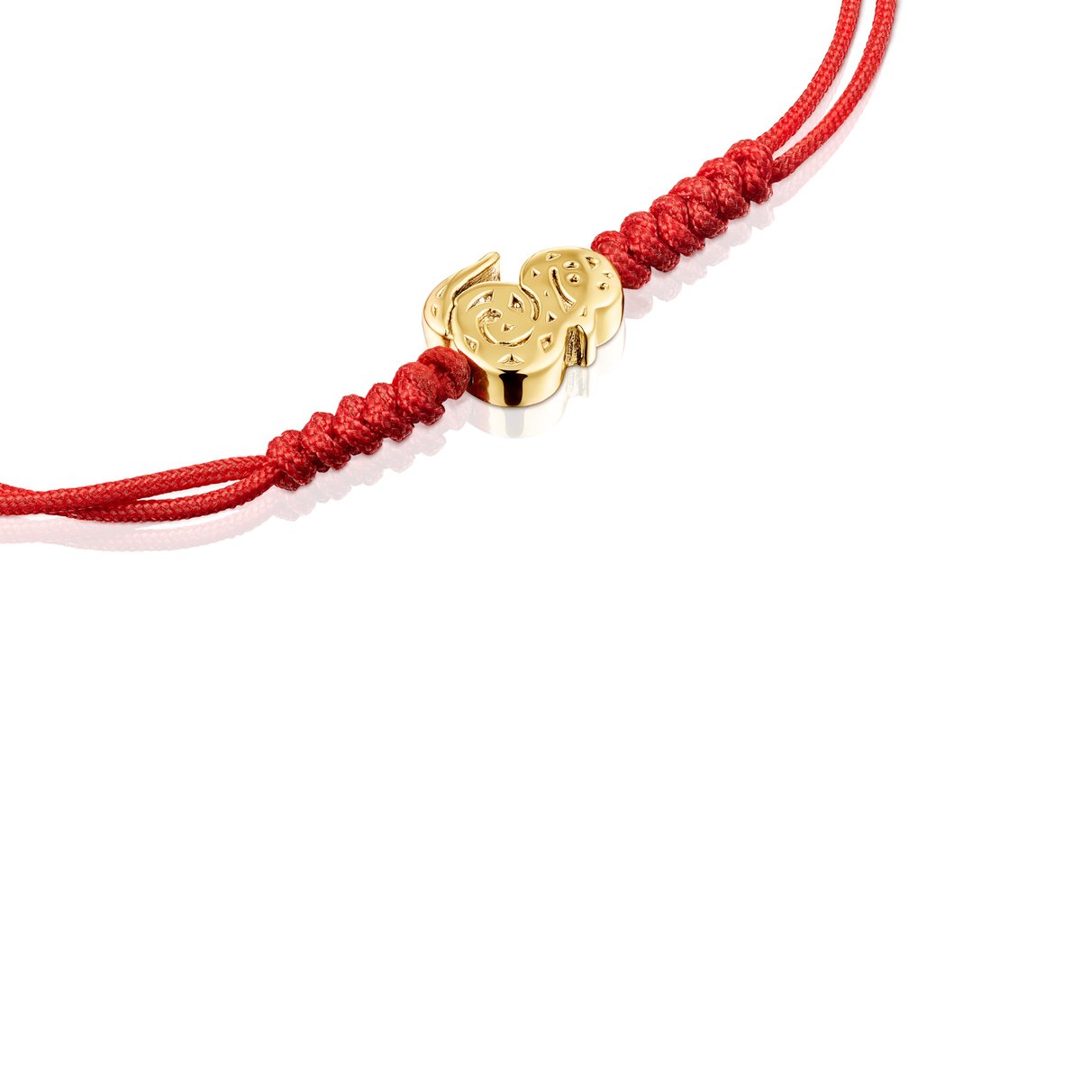 Tous Chinese Horoscope Snake Bracelet in Gold and Red Cord 918431110