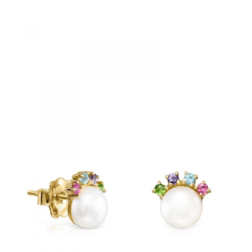 Tous Gold Real Sisy Earrings with small Pearl and Gemstones 812453020