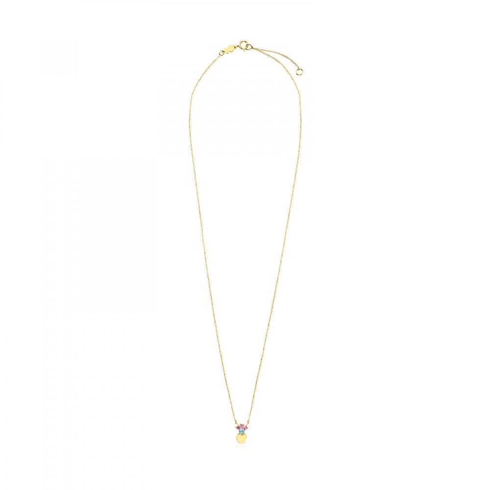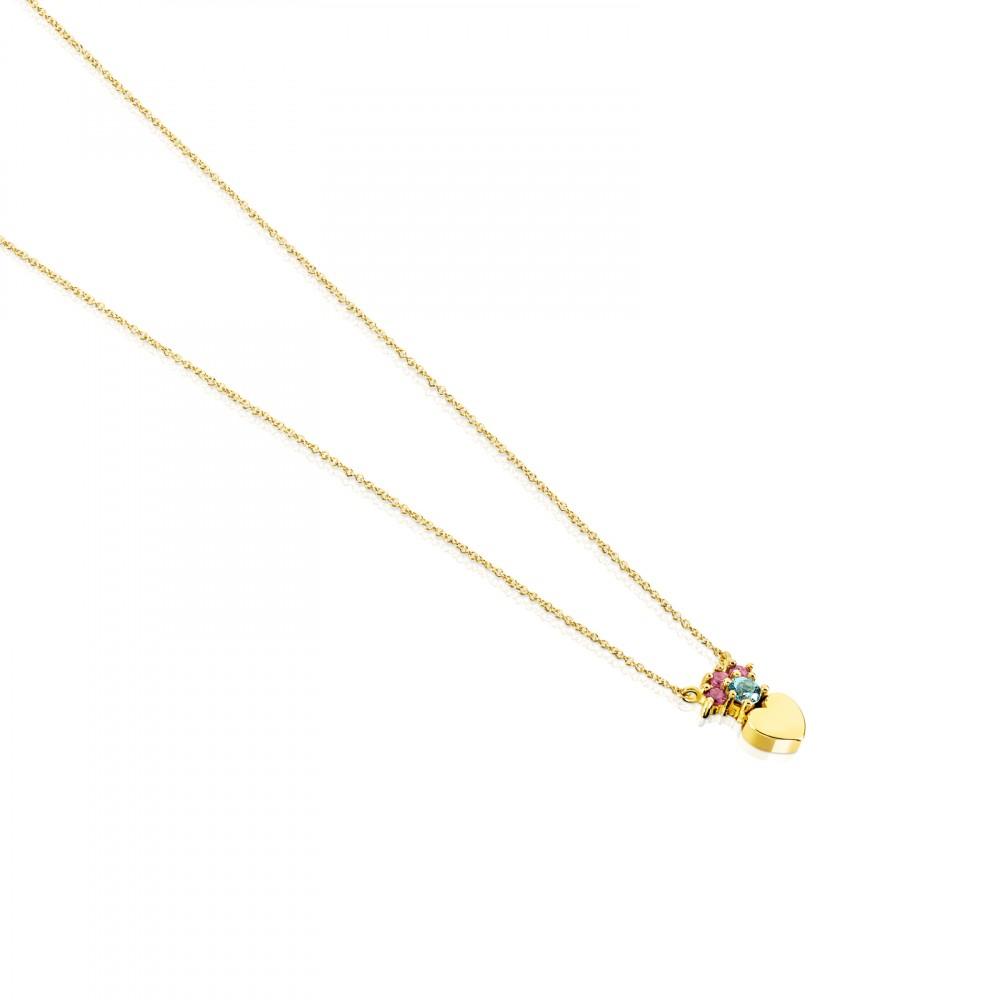 Tous Gold Real Sisy heart Necklace with Gemstones 812452050