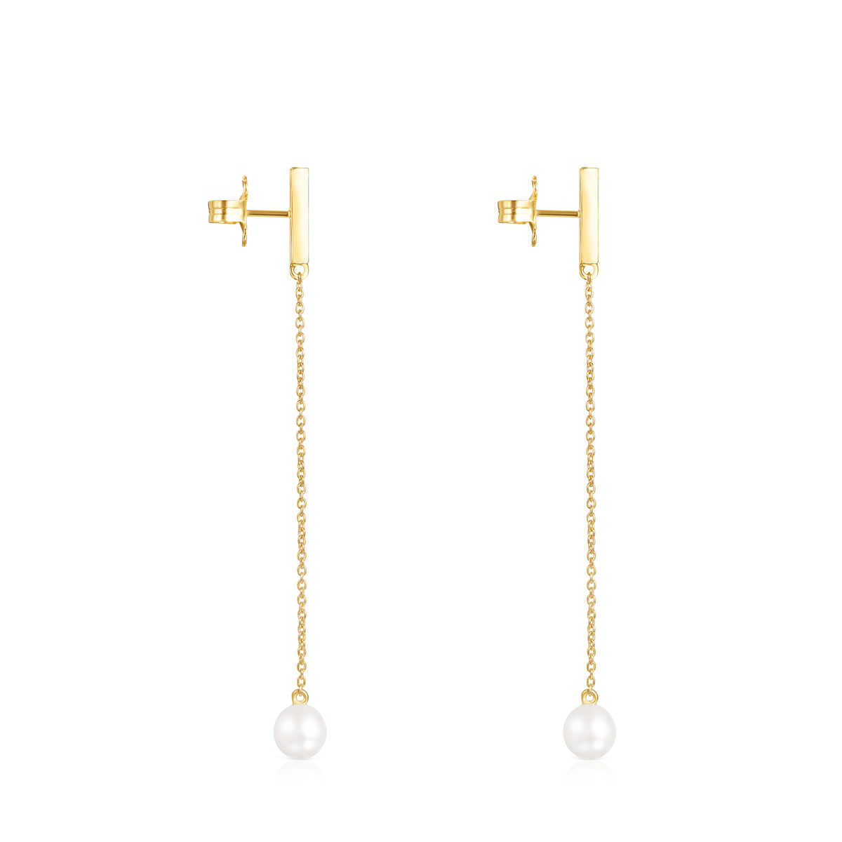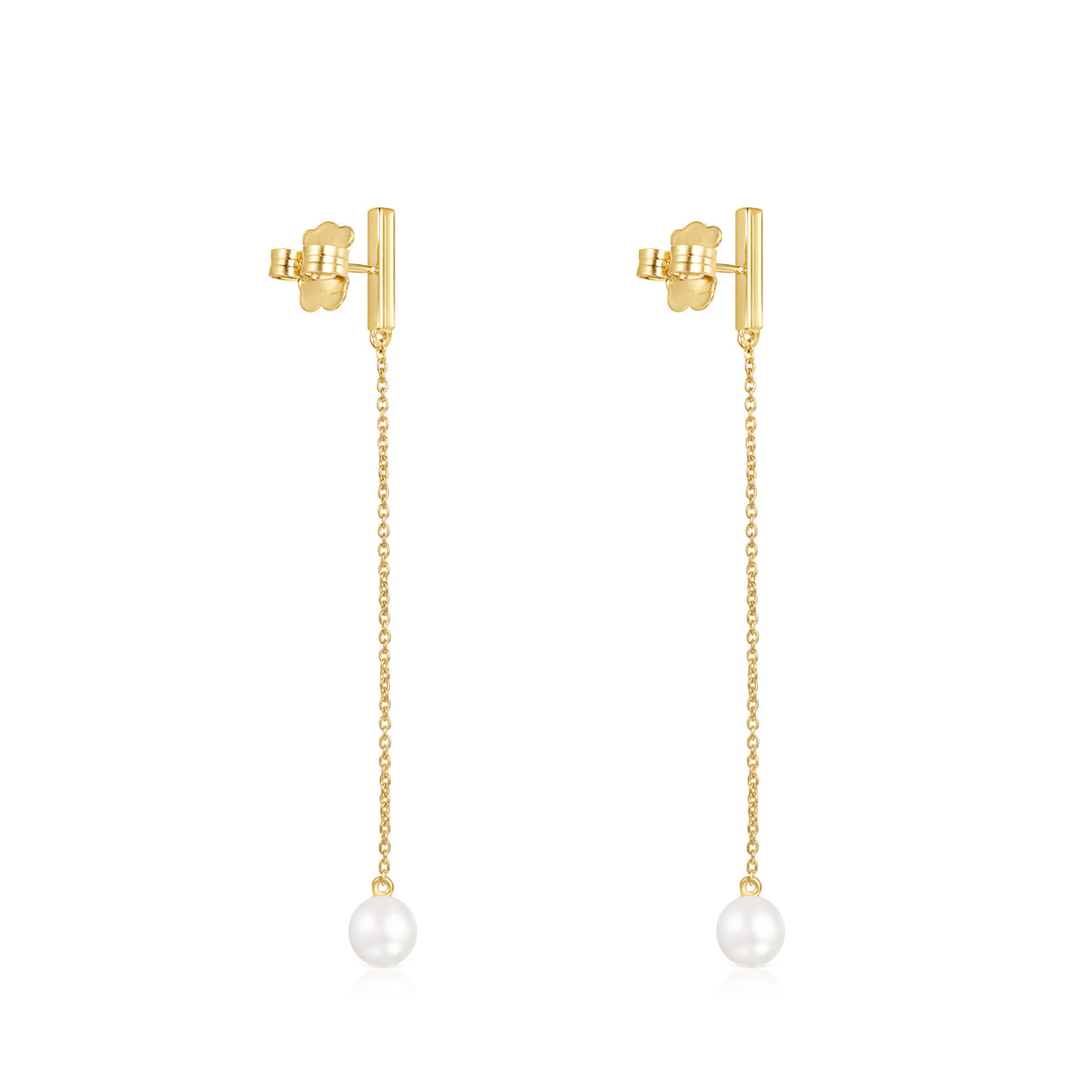 Tous Long Nocturne bar Earrings in Gold Vermeil with Diamonds and Pearl 918443730