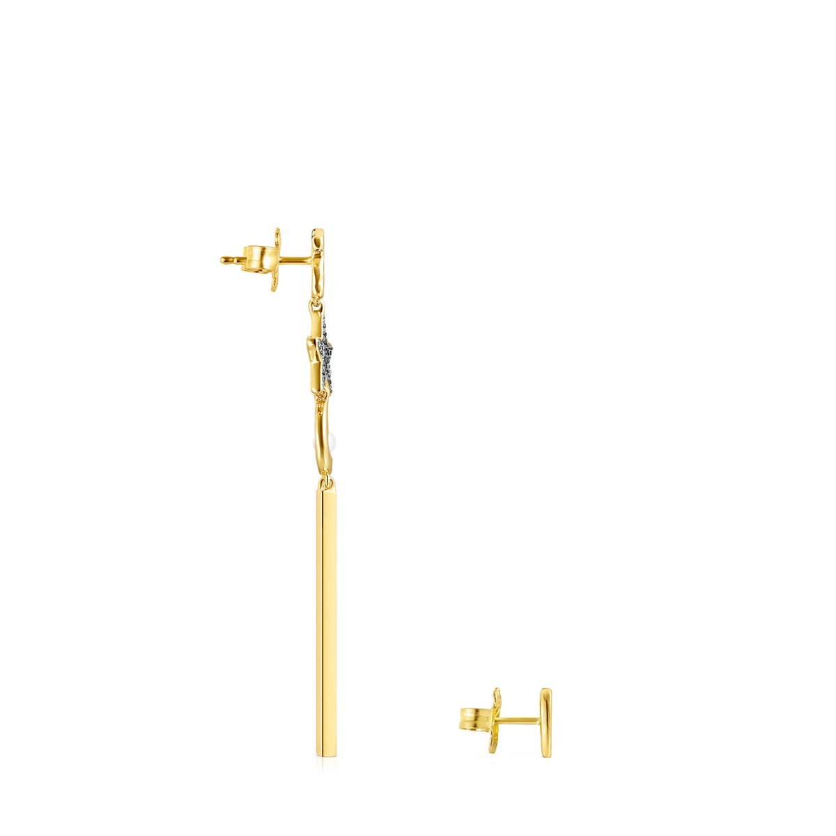 Tous Long Nocturne Earrings in Gold Vermeil with Diamonds and Pearl 918443790
