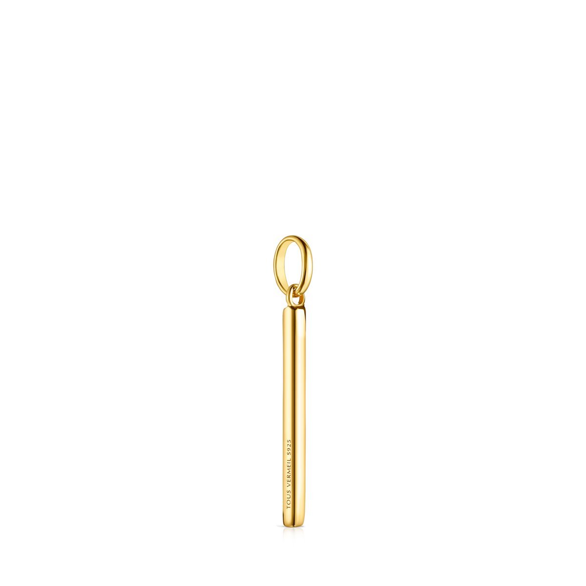 TOUS Nocturne bar pendant in gold vermeil and 0.19 ct mix color single-cut diamonds. Pendant size: 2.6 cm. Vermeil is a layer of 18kt gold on sterling silver with a minimum thickness of 2.5 microns, with no other material between them.
