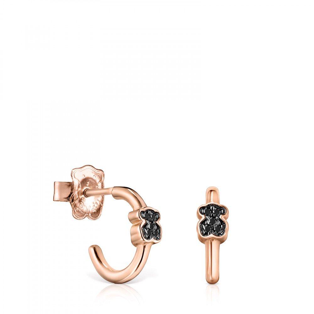 TOUS Motif hoops in rose gold vermeil with bear in 0.46-cm spinels. Push back. Size: 1.3 cm. (Vermeil: Sterling silver plated with a layer of 18kt rose gold.)