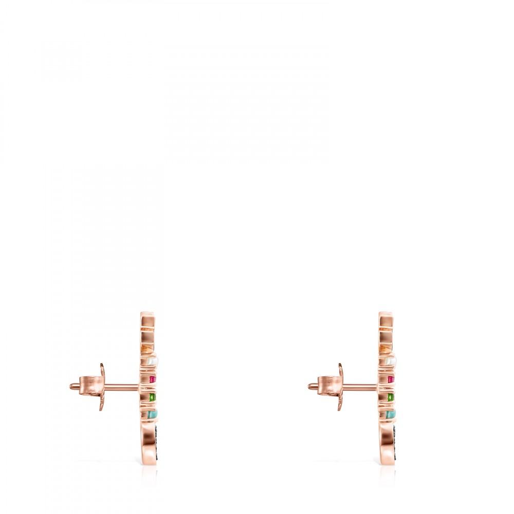 TOUS San Valentín arrow earrings in rose gold vermeil with spinels, turquoise, tsavorite, ruby and pearl. Push back. Size: 2.2 cm. (Vermeil: Sterling silver covered with 18kt rose gold plating.)