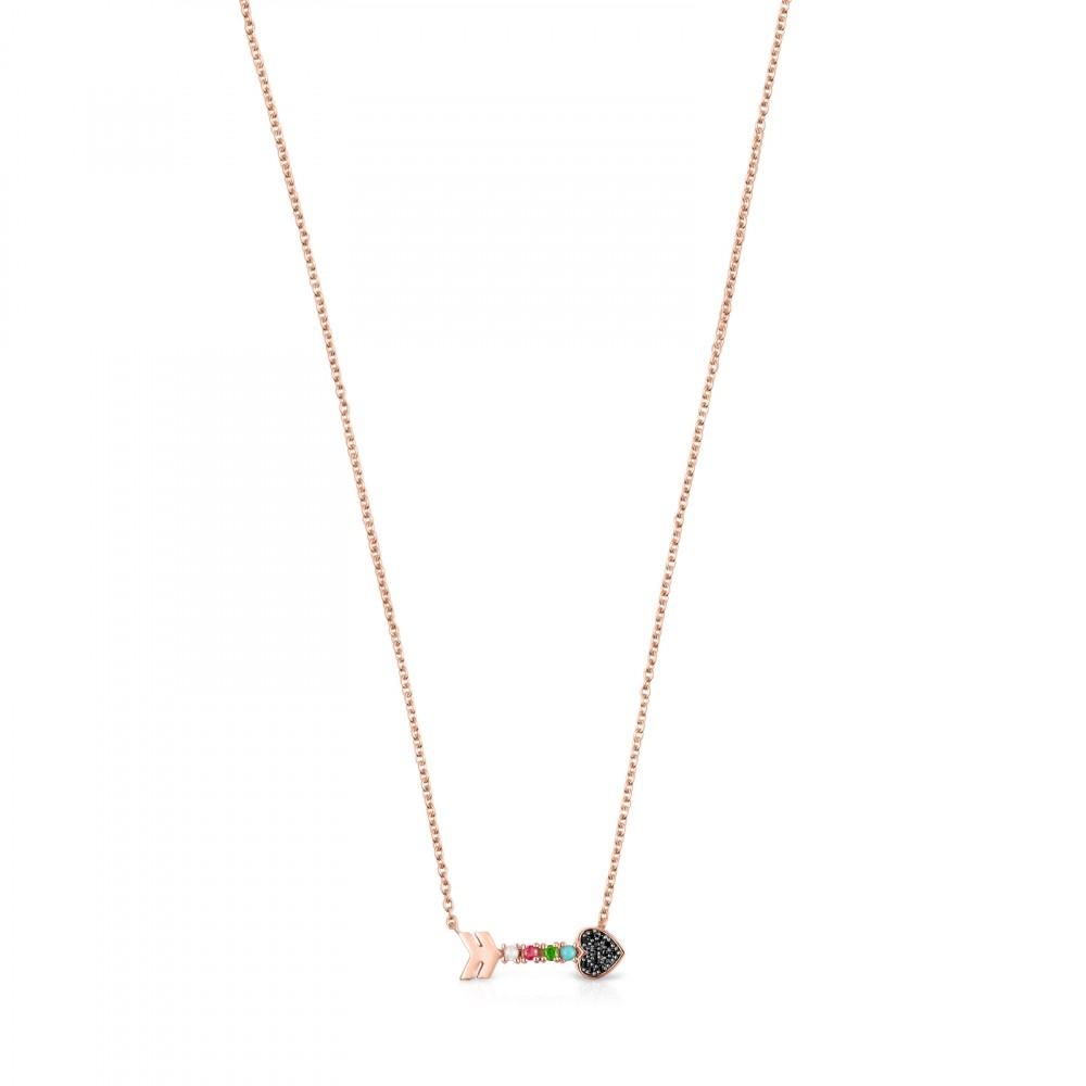 Tous Rose Gold Vermeil San Valentín arrow Necklace with Gemstones 915302500