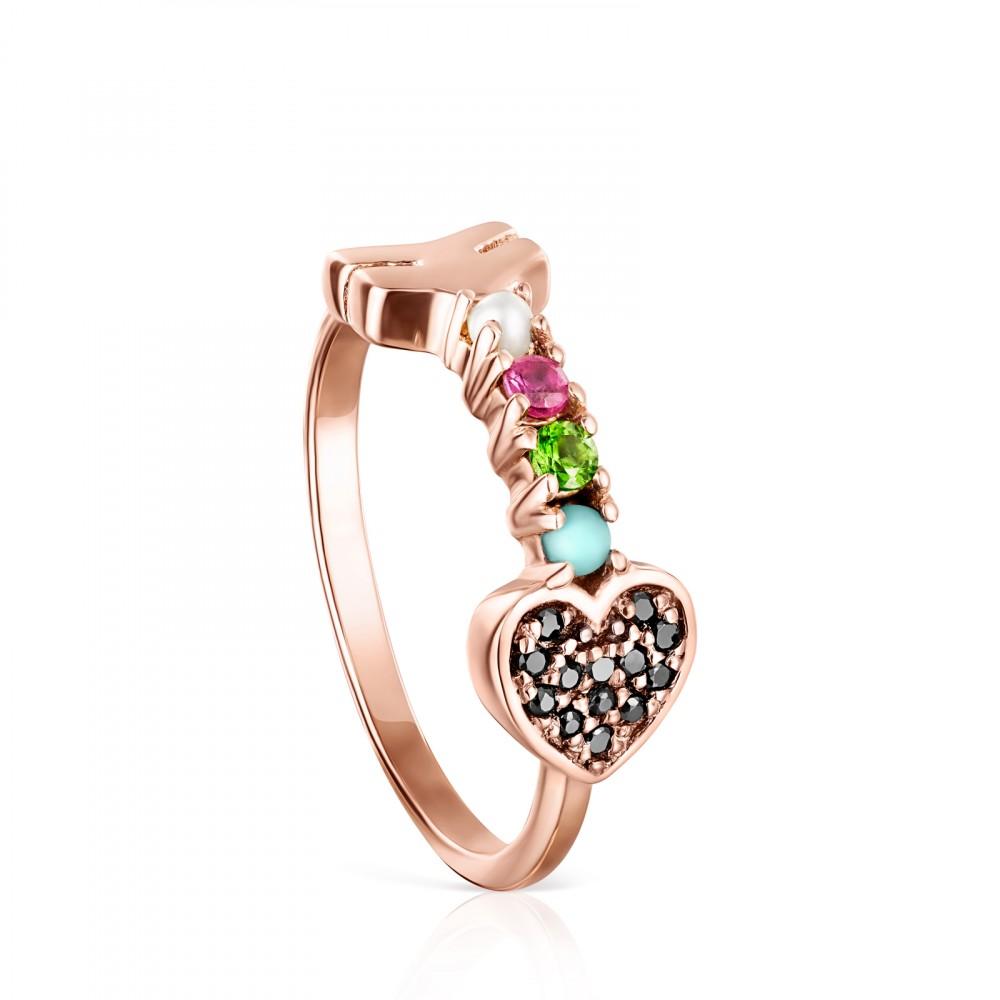 TOUS San Valentín arrow ring in rose gold vermeil with spinels, turquoise, tsavorite, ruby and pearl. Size: 2.2 cm. (Vermeil: Sterling silver covered with 18kt rose gold plating.)