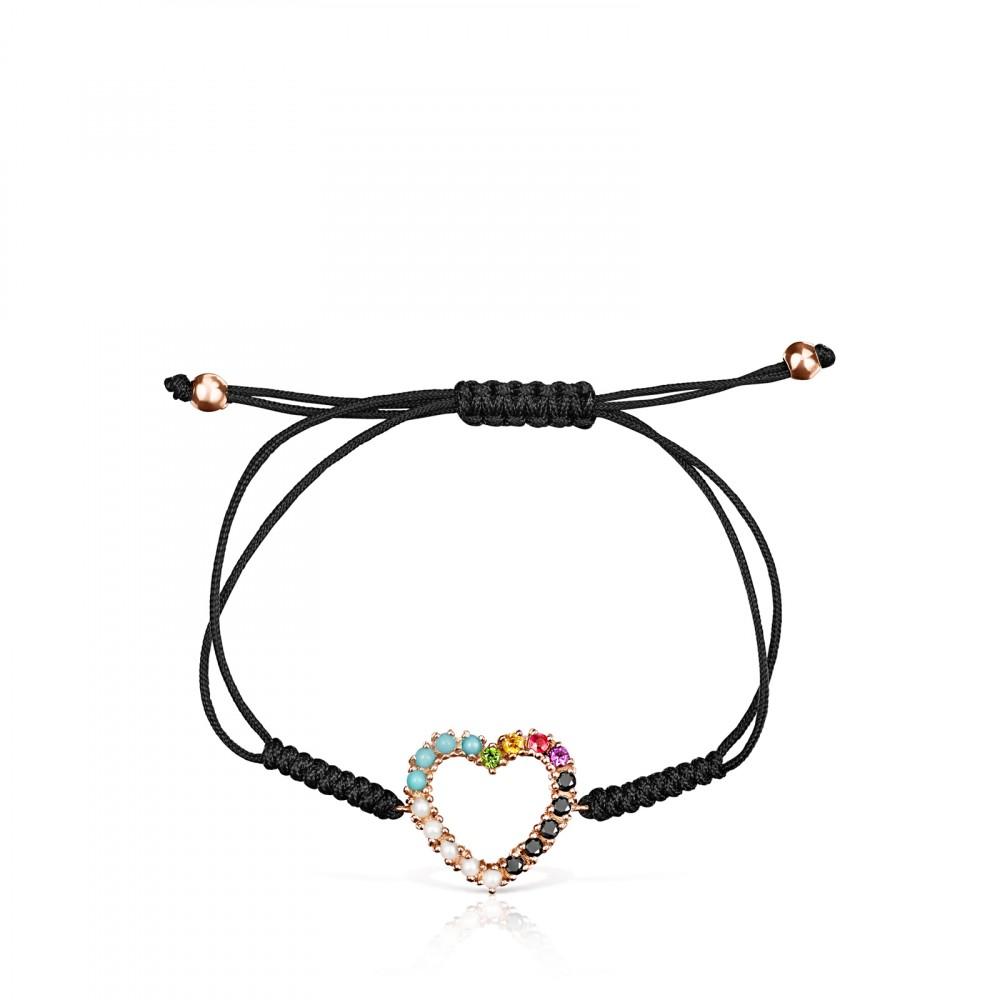 Tous Rose Gold Vermeil San Valentín heart Bracelet with Gemstones and black Cord 915301510