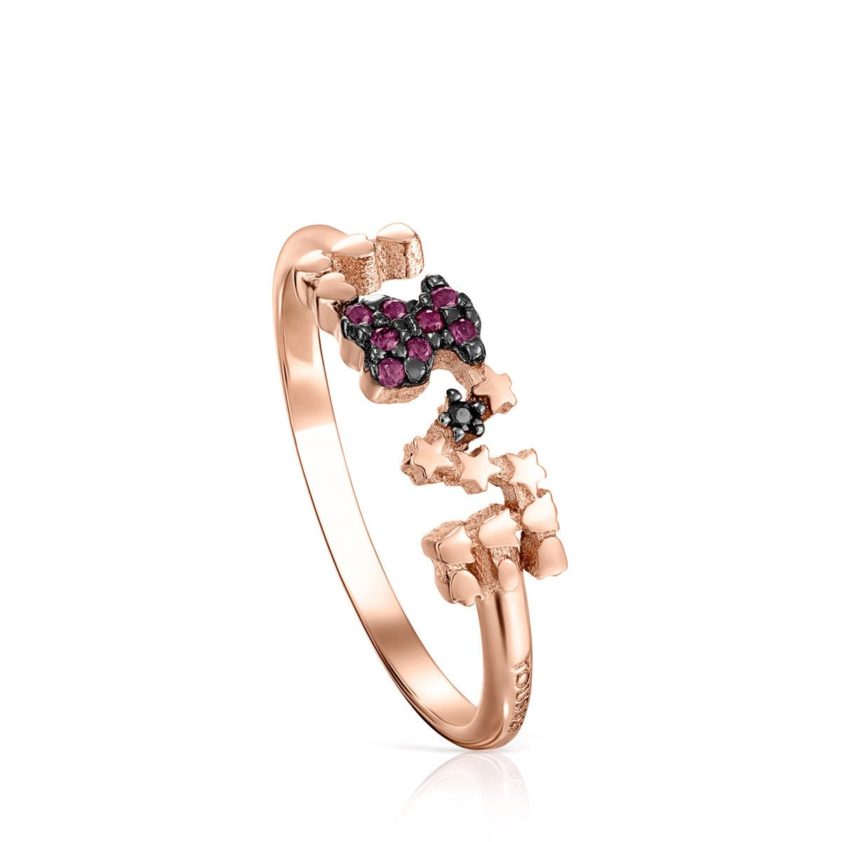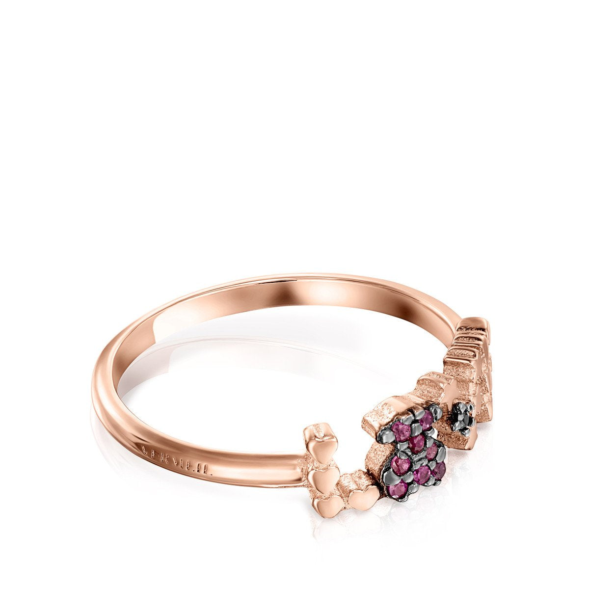 TOUS San Valentín love ring in rose gold vermeil with rubies and spinel. Size: 1.4 cm. (Vermeil: Sterling silver covered with 18kt rose gold plating.)